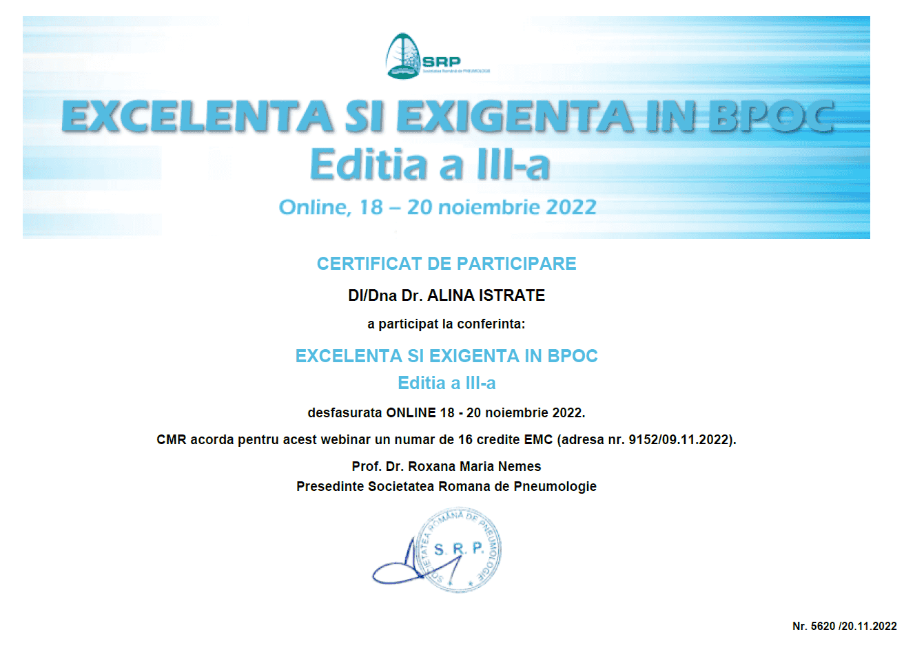2022 –  Excelență și exigență în BPOC Ediția a III-a – Societatea Română de Pneumologie