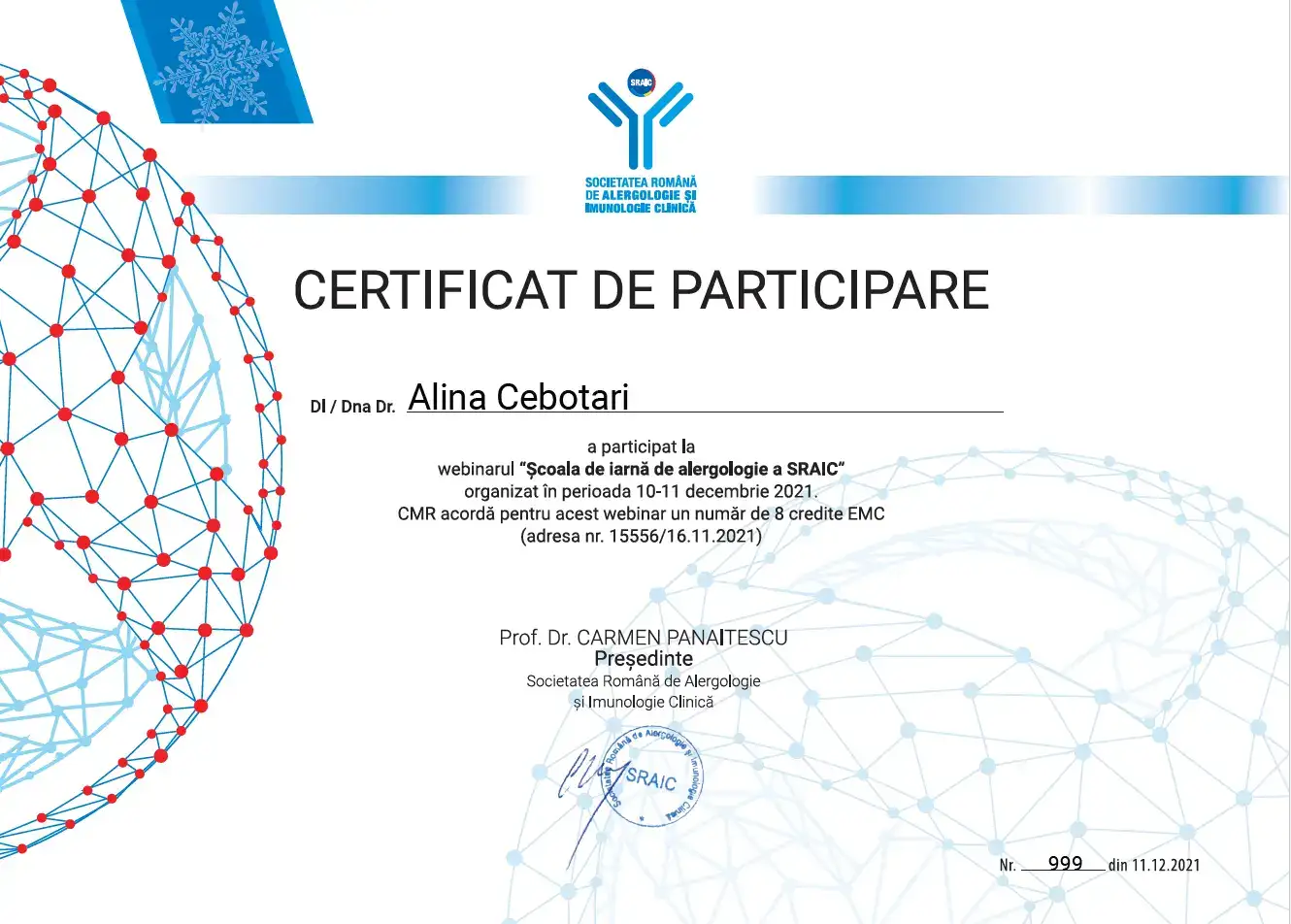 2021 –  Școala de iarnă de Alergologie – Societatea Română de Alergologie și Imunologie clinică