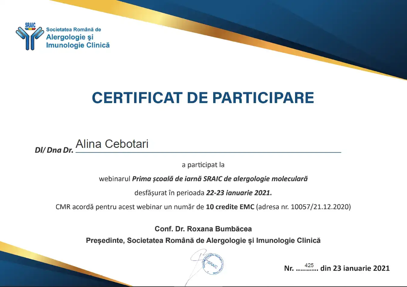 2021 – Prima Școală de iarnă de Alergologie moleculară – Societatea Română de Alergologie și Imunologie clinică