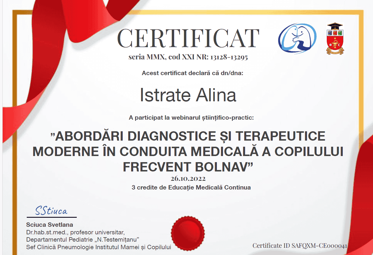 2023 – prezent – IMSP Institutul Mamei și Copilului – Medic alergolog-imunolog