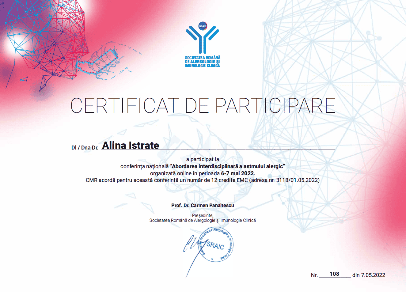 2022 –  Conferința Națională de Alergologie și Imunologie – Societatea Română de Alergologie și Imunologie clinică