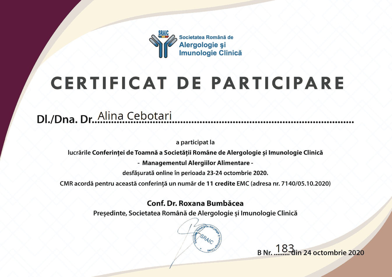 2020 –  Conferința de Toamnă a Societății de Alergologie și Imunologie Clinică – Societatea Română de Alergologie și Imunologie clinică